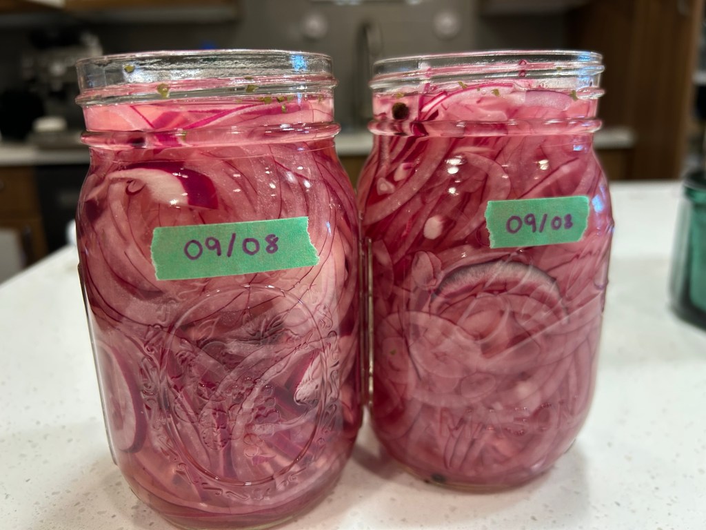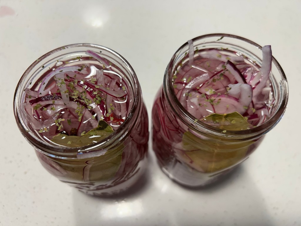 These mason jars are ideal for storing pickled onions. I love that they don’t take up much space, they’re glass, and super durable. I also bought some plastic lids since I don’t use them for canning — that way I can reuse the lids over and over again.